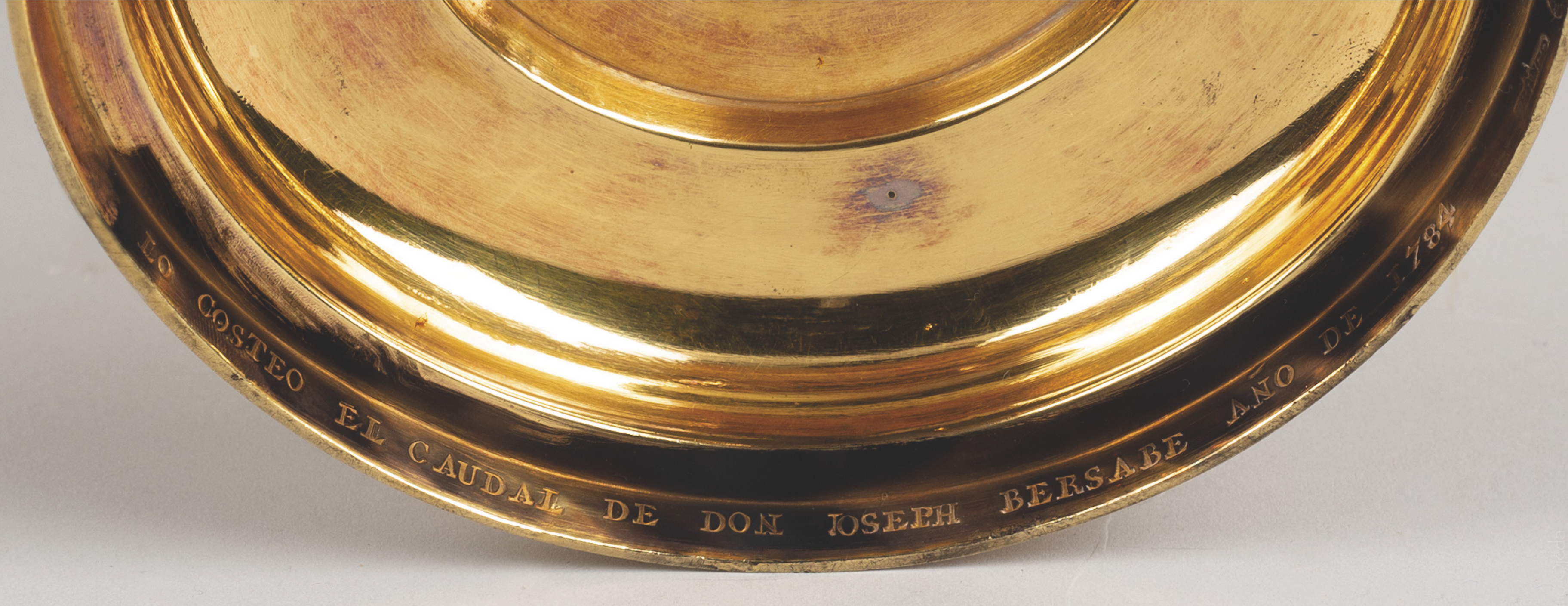De la enajenación general del conjunto de bienes muebles y alhajas que adornaban su domicilio y el resto de sus propiedades fueron exceptuadas dos piezas singulares: una pintura de la Inmaculada Concepción y un reloj de oro. El cuadro de la Inmaculada, con su marco de madera dorada, fue destinado al convento de las Marroquíes (donde actualmente se conserva), para que recibiera veneración en el coro de su iglesia; en este sentido, recordemos que debió existir un evidente vínculo de amistad con su antigua vecina, Mónica Garnica, marquesa de Valdetorres, que había fallecido en 1772. El reloj de oro, con su cadena y una caja del mismo metal, junto con un legado adicional de 750 reales, debían ser entregados a la parroquia de San Juan Bautista para la ejecución de un copón de oro. Esta pieza de orfebrería fue realizada en 1784 por el platero ecijano José Franco Hernández Colmenares, como acredita la inscripción que aún hoy lo adorna.